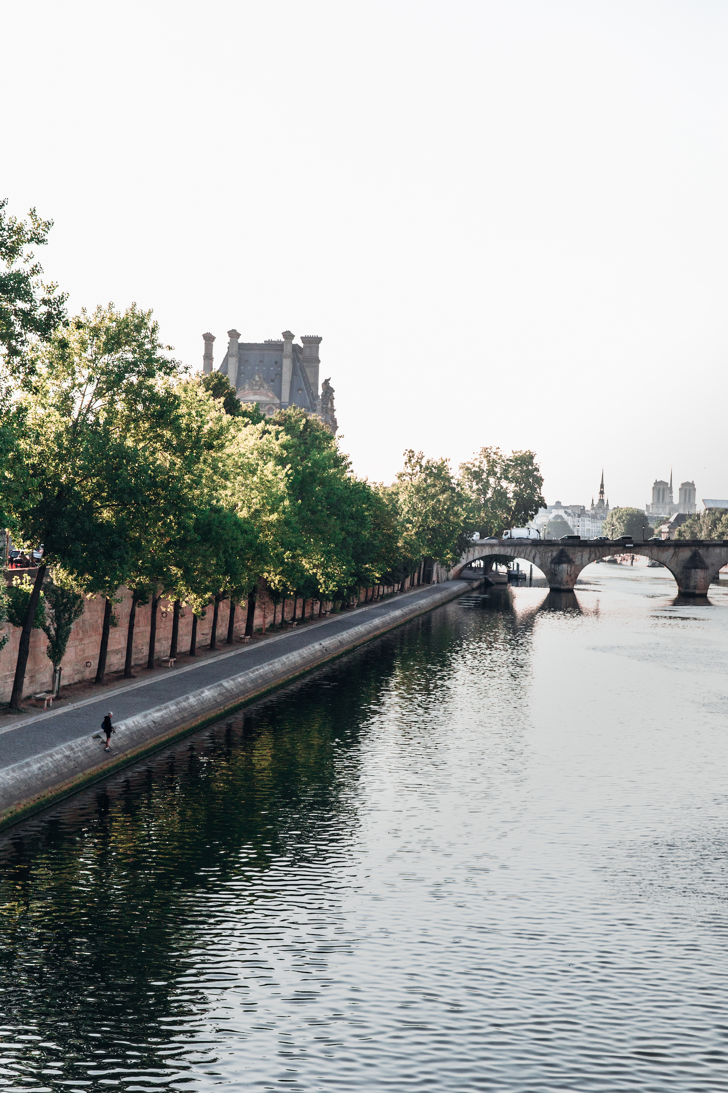 Fishing on the Seine river at 7 am with Le Louvre and Notre Dame in the backdrop