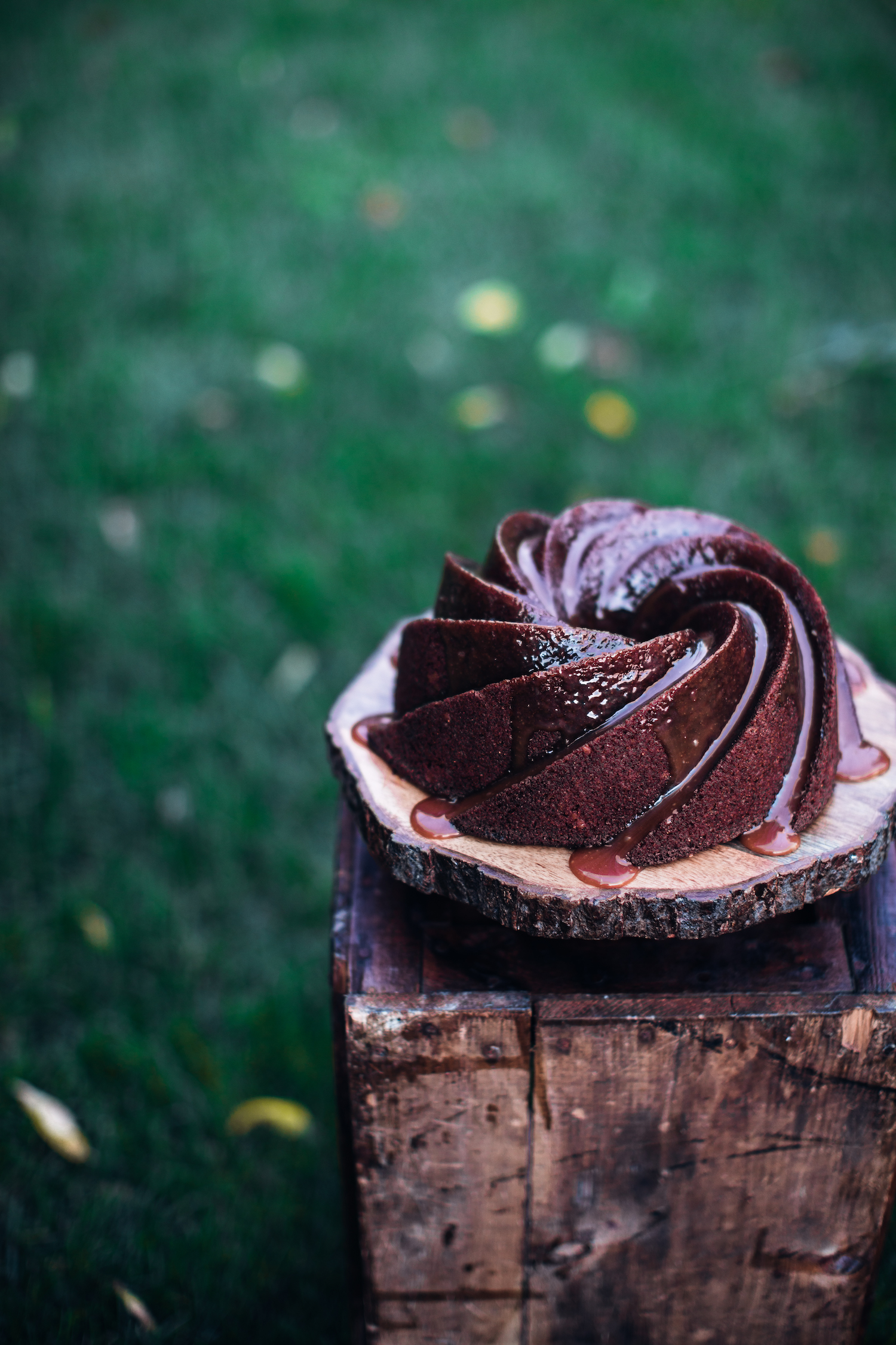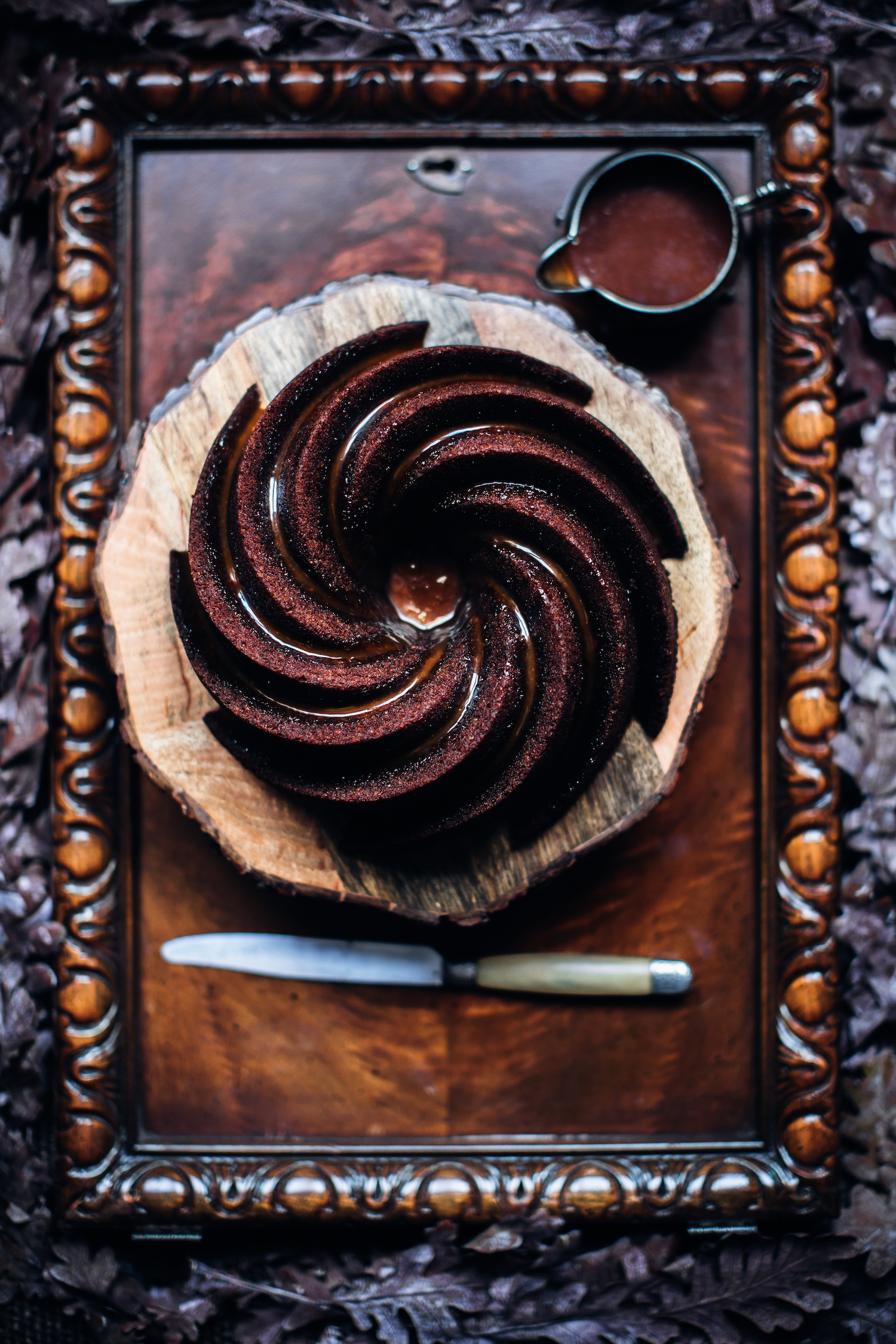 Spiced Rum, Date, Walnut, Molasses Bundt Cake with Rum Caramel Drizzle