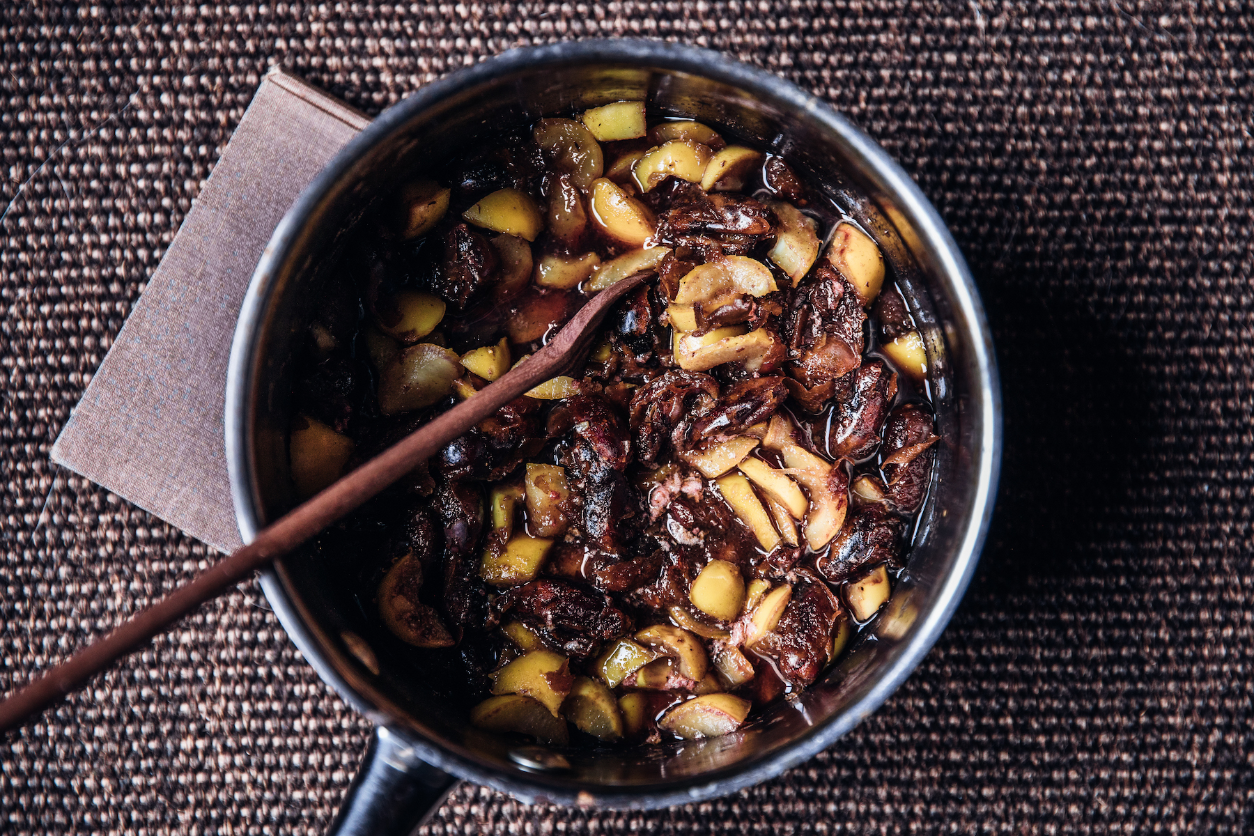 11. Stir in the spiced rum into the date puree with a spatula