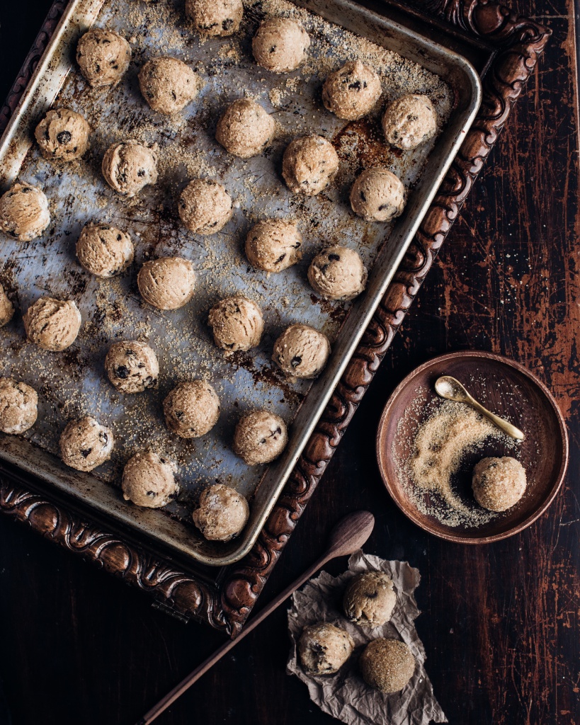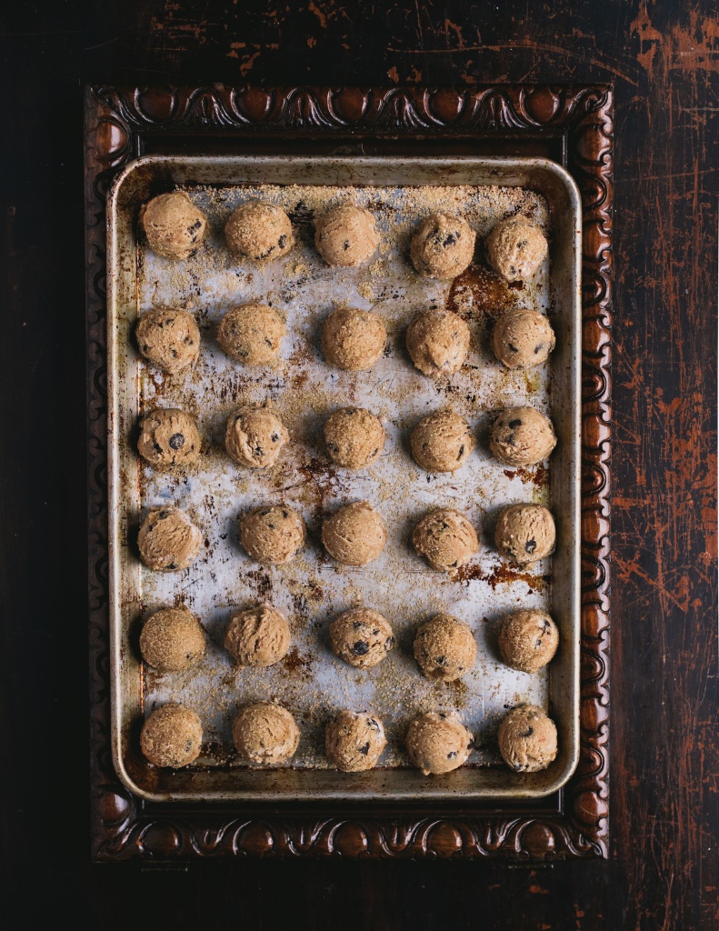 - Roll cookie dough into 1 inch balls or I use a 1 inch ice cream scoop